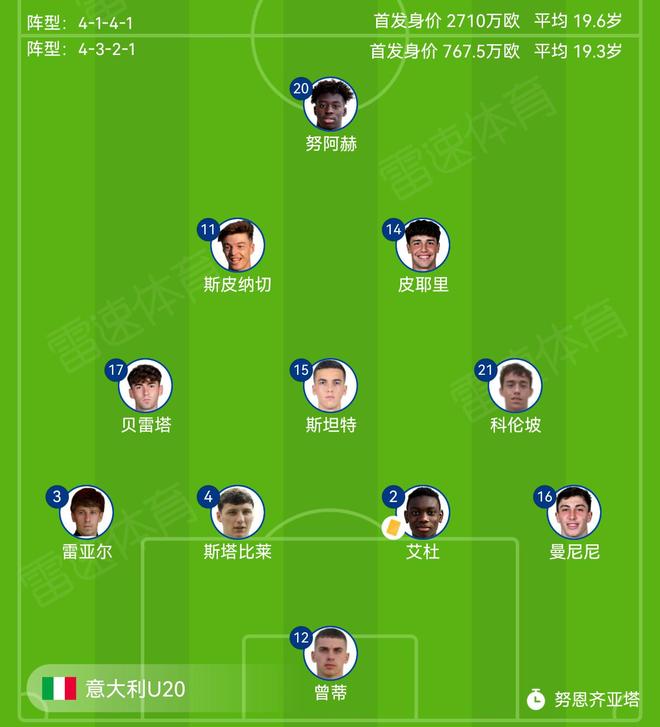 1、意大利U19(三场欧青赛U19资格赛全部战罢,意大利U19两胜一平积7分,小组第一晋级),四人: